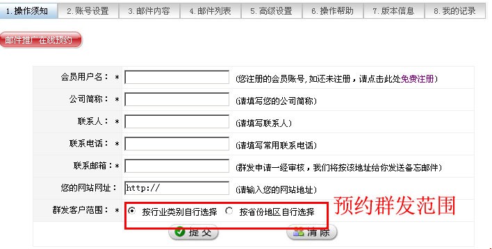 另外:购买我司国外空间主机空间赠送国内3亿邮件地址的群发权限,只要一个按键,您的任意网页或图片视频或声音文字都可以100%群发到3亿受众邮箱,对您网站的宣传和推广产生极大的好处。市面上群发系统100%都要钱购买,我司开发的此群发系统绝对免费。你可以根据你想要的不同省份或行业客户有争对性的进行群发!